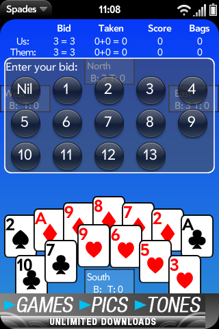Play the card game Spades on your Pre. Play one of four variants (Partner, Solo, Suicide or Mirror).