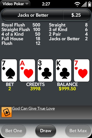 Play this vegas style video poker machine wherever you are. Choose between: